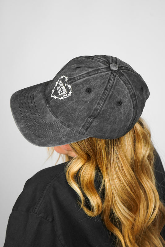 BARBED HEART CAP ACID WASH